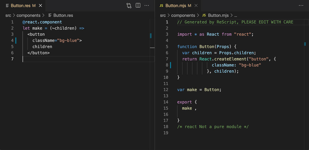 A builtin pretty printer, memory friendly VSCode & Vim plugins, a stable type system and compiler that doesn't require lots of extra configuration. ReScript brings all the tools you need to build reliable JavaScript, Node and ReactJS applications.